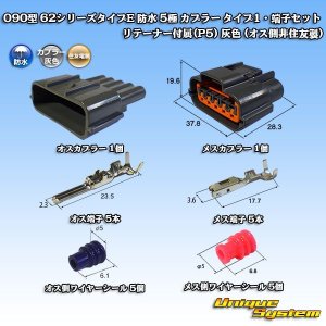 住友電装 090型 62シリーズタイプE 防水 5極 カプラー タイプ1・端子セット リテーナー付属(P5) 灰色 (オス側非住友製)