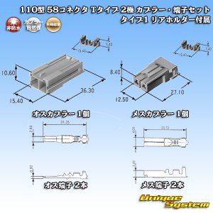 矢崎総業 110型 58コネクタ Tタイプ 非防水 2極 オスカプラー・端子セット タイプ1 リアホルダー付属