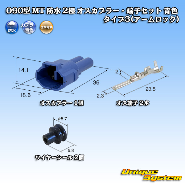 住友電装 090型 MT 防水 2極 オスカプラー・端子セット タイプ3(アームロック) 青色