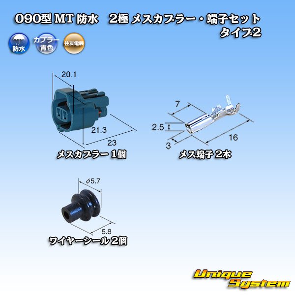 住友電装 090型 MT 防水 2極 メスカプラー・端子セット タイプ2 青色