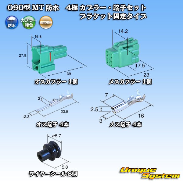 住友電装 090型 MT 防水 4極 カプラー・端子セット ブラケット固定タイプ 緑色タイプ