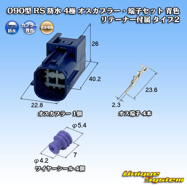 住友電装 090型 RS(スタンダードタイプ2) 防水 4極 オスカプラー・端子セット 青色 リテーナー付属 タイプ2
