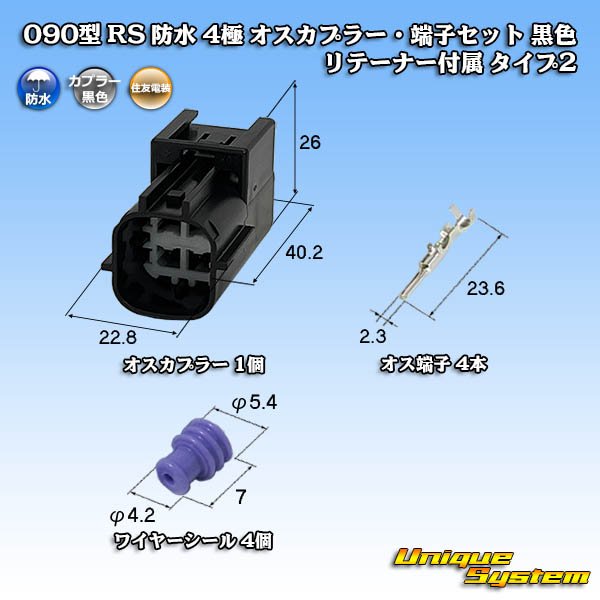 住友電装 090型 RS(スタンダードタイプ2) 防水 4極 オスカプラー・端子セット 黒色 リテーナー付属 タイプ2