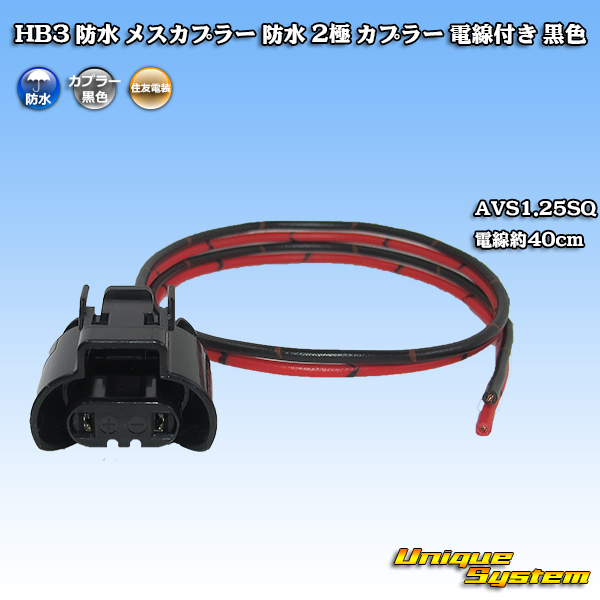 住友電装 HB3 防水 メスカプラー 防水 2極 カプラー 電線付き 黒色