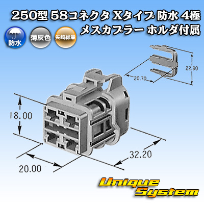 矢崎総業 250型 58コネクタ Xタイプ 防水 4極 メスカプラー ホルダ付属