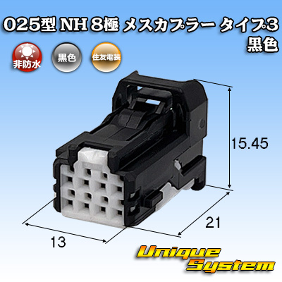 住友電装 025型 NH 非防水 8極 メスカプラー タイプ3 黒色 [戻る]