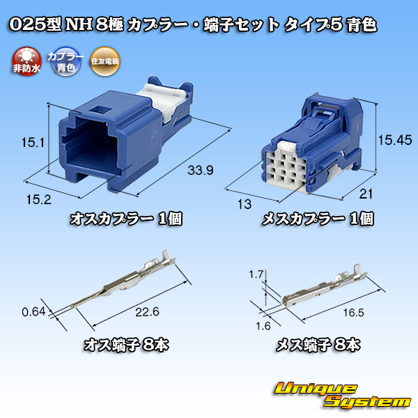 住友電装 025型 NH 非防水 8極 カプラー・端子セット タイプ5 青色