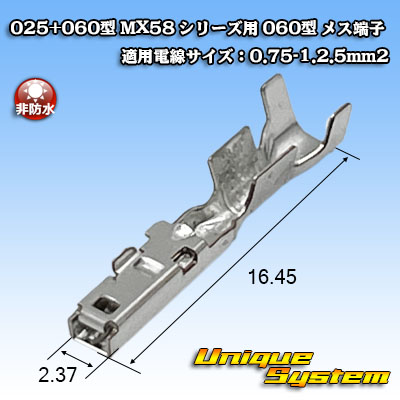 日本航空電子JAE 025+060型 MX58 ハイブリッドシリーズ用 非防水 060型 メス端子 適用電線サイズ:0.75-1.2.5mm2 [戻る]