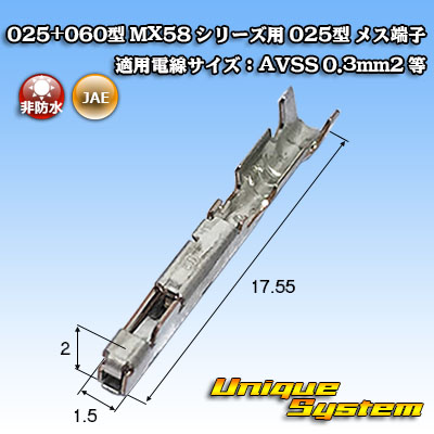 日本航空電子JAE 025+060型 MX58 ハイブリッドシリーズ用 非防水 025型 メス端子 適用電線サイズ:AVSS 0.3mm2 等