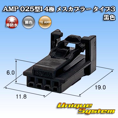 タイコエレクトロニクス AMP 025型I 非防水 4極 メスカプラー タイプ3 黒色
