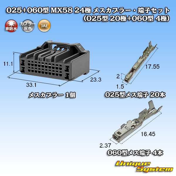 日本航空電子JAE 025+060型 MX58 ハイブリッド 非防水 24極 メスカプラー・端子セット (025型 20極+060型 4極) [戻る]