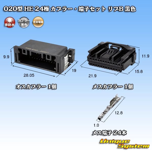 住友電装 020型 非防水 HE 24極 カプラー・端子セット リブB 黒色
