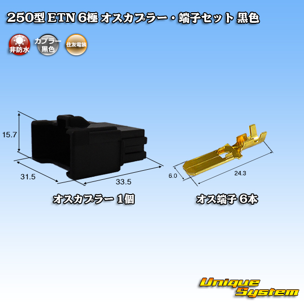 住友電装 250型 ETN 非防水 6極 オスカプラー・端子セット 黒色