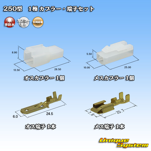 矢崎総業 250型 CN(A) 非防水 1極 カプラー・端子セット