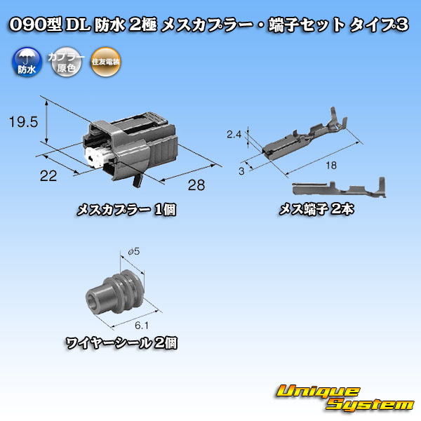 住友電装 090型 DL 防水 2極 メスカプラー・端子セット タイプ3 [戻る]
