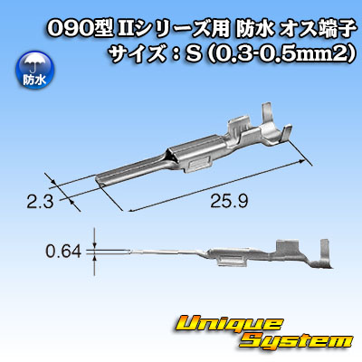 矢崎総業 090型 IIシリーズ用 防水 オス端子 サイズ:S (0.3-0.5mm2)
