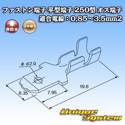 日本端子 ファストン端子(平型端子) 250型 オス端子 適合電線:0.85〜3.5mm2 [250fasten-TM] 日本端子 ファストン端子(平型端子) 250型 オス端子 適合電線:0.85〜3.5mm2 [250fasten-TM] 販売価格: 16円~1,600円(税込) オプションにより価格が変わる場合もあります。 Tweet 個数 在庫 1個 在庫あり 100個 在庫あり 個数: 選択してください 1個 100個 販売価格: 16円~1,600円(税込) 数量: 返品特約に関する重要事項 お問い合わせ