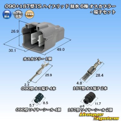 住友電装 090+187型TS ハイブリッド 防水 6極 オスカプラー・端子セット (090型TS 4極+187型TS 2極)