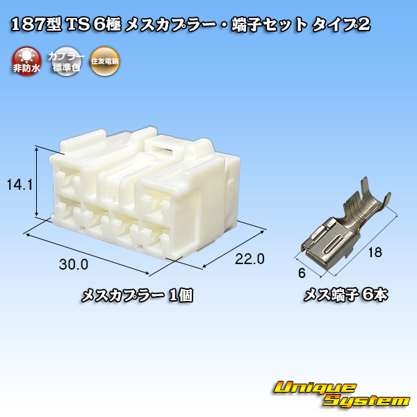住友電装 187型 TS 非防水 6極 メスカプラー・端子セット タイプ2 [SM187TS-6PFS-TY2] 住友電装 187型 TS 非防水 6極 メスカプラー・端子セット タイプ2 [SM187TS-6PFS-TY2] 販売価格: 387円(税込) 在庫あり Tweet 数量: 返品特約に関する重要事項 お問い合わせ