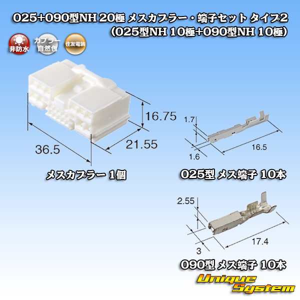 住友電装 025+090型NH ハイブリッド 非防水 20極 メスカプラー・端子セット タイプ2 (025型NH 10極+090型NH 10極)