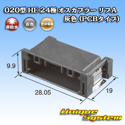 住友電装 020型 非防水 HE 24極 オスカプラー リブA 灰色 (PCBタイプ) [SM020HE-24PM-rib-A_PCB]