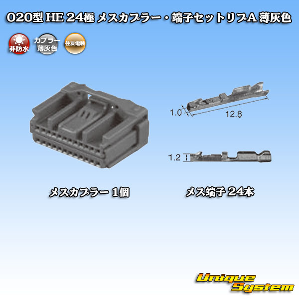 住友電装 020型 非防水 HE 24極 メスカプラー・端子セット リブA 薄灰色