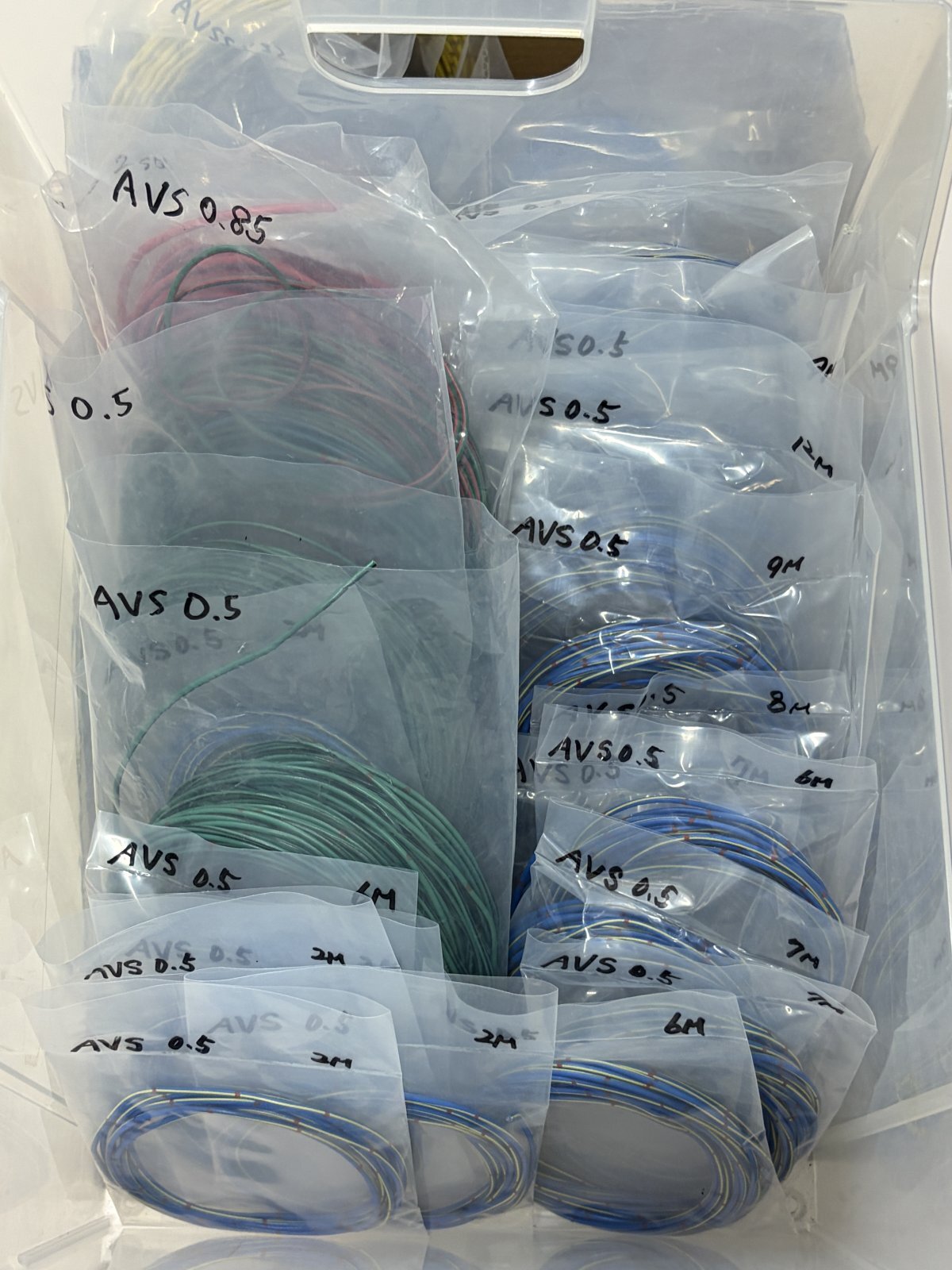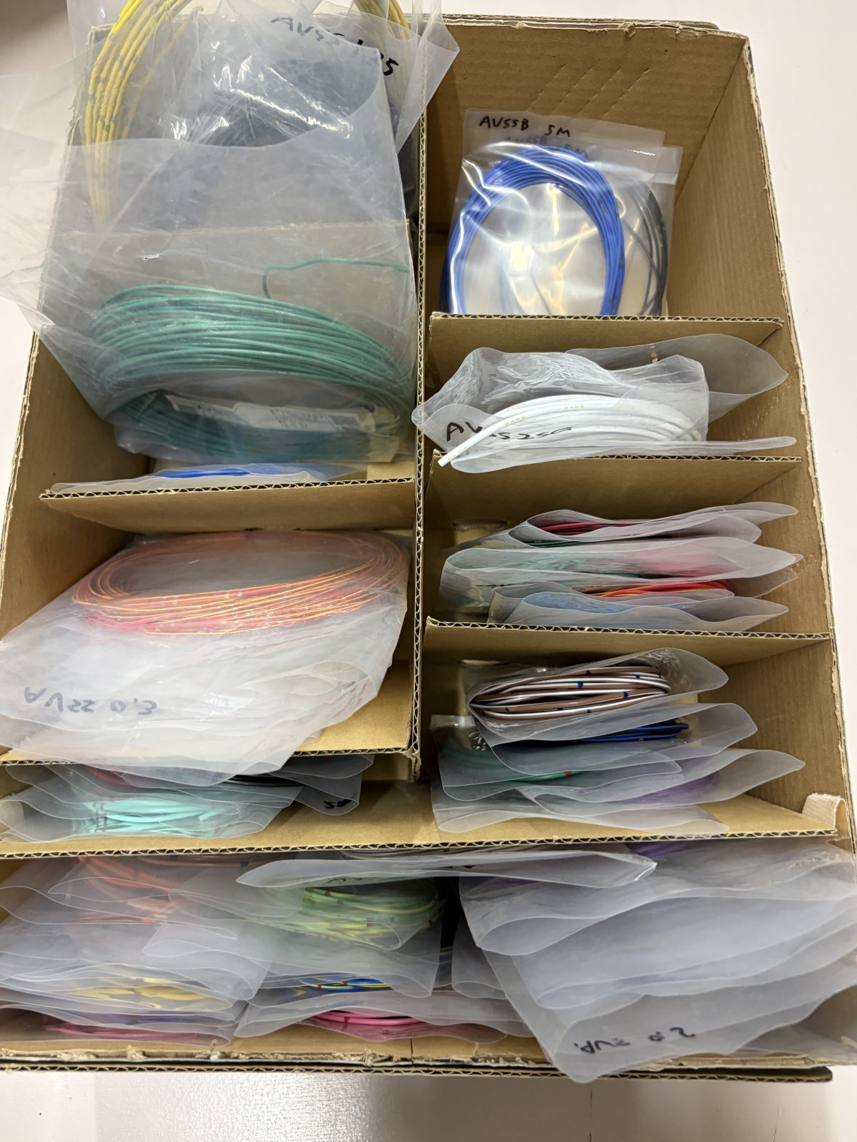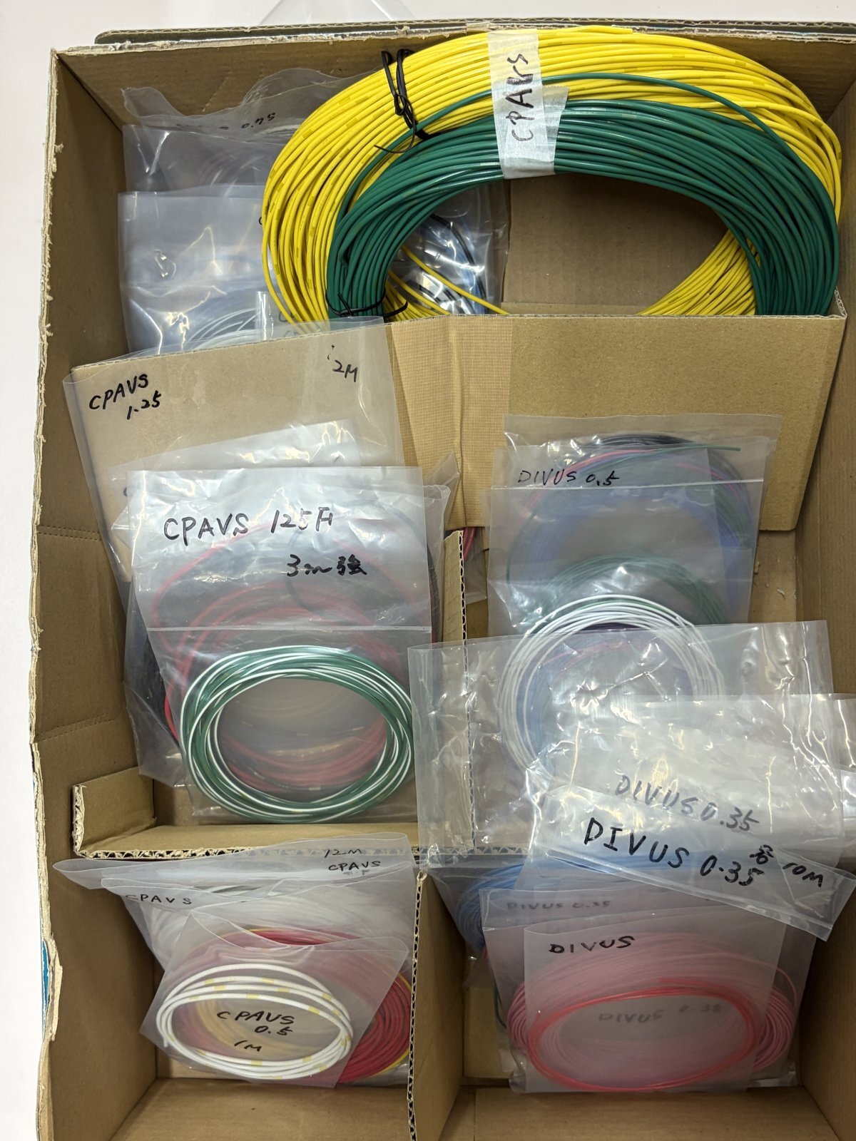 様々な太さ/種類の電線をまとめて発送となります。
