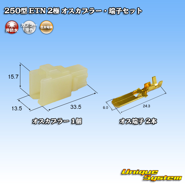 住友電装 250型 ETN 非防水 2極 オスカプラー・端子セット タイプ1 [SM250ETN-2PMS-TY1] 住友電装 250型 ETN 非防水 2極 オスカプラー・端子セット タイプ1 [SM250ETN-2PMS-TY1] 販売価格: 110円~11,000円(税込) オプションにより価格が変わる場合もあります。 Tweet 個数 在庫 1個 在庫あり 100個 在庫あり 個数: 選択してください 1個 100個 販売価格: 110円~11,000円(税込) 数量: 返品特約に関する重要事項 お問い合わせ