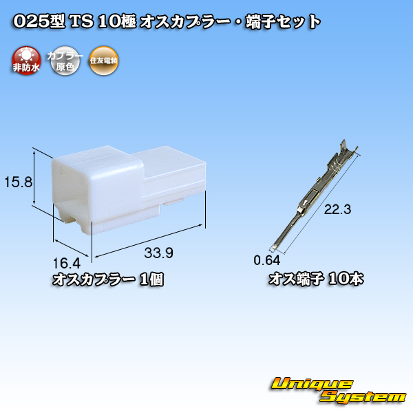 住友電装 025型 TS 非防水 10極 オスカプラー・端子セット [SM025TS-10PMS] 住友電装 025型 TS 非防水 10極 オスカプラー・端子セット [SM025TS-10PMS] 販売価格: 255円(税込) 在庫あり Tweet 数量: 返品特約に関する重要事項 お問い合わせ