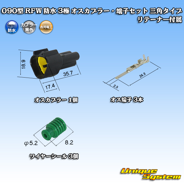 古河電工 090型 RFW 防水 3極 オスカプラー・端子セット 三角タイプ 黒色 リテーナー付属 [W-FR090RFW-3PMST] 古河電工 090型 RFW 防水 3極 オスカプラー・端子セット 三角タイプ 黒色 リテーナー付属 [W-FR090RFW-3PMST] 販売価格: 300円~30,000円(税込) オプションにより価格が変わる場合もあります。 Tweet 個数 在庫 1個 在庫あり 100個 在庫あり 個数: 選択してください 1個 100個 販売価格: 300円~30,000円(税込) 数量: 返品特約に関する重要事項 お問い合わせ
