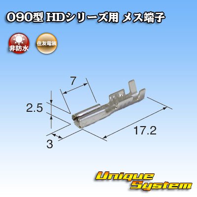 住友電装 090型 非防水 MT・HM・NS・HD シリーズ用 非防水 メス端子 適合電線:0.5-1.25mm2 [SM090HD-TF-1.25mm2]