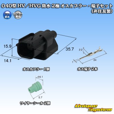 040型 HV/HVG 防水 2極 オスカプラー・端子セット タイプ1 (非住友製) [W-SM040HVG-2PMS-TY1]