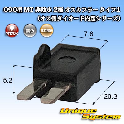 住友電装 090型 MT 非防水 2極 オスカプラー タイプ1 (オス側ダイオード内蔵シリーズ) [SM090MT-2PM-TY1-BUILT-IN-DIODE]