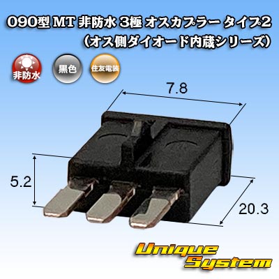 住友電装 090型 MT 非防水 3極 オスカプラー タイプ2 (オス側ダイオード内蔵シリーズ)