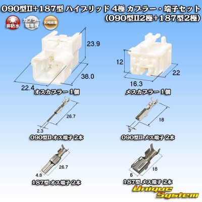 東海理化 090型II+187型 ハイブリッド 非防水 4極 カプラー・端子セット (090型II2極+187型2極)