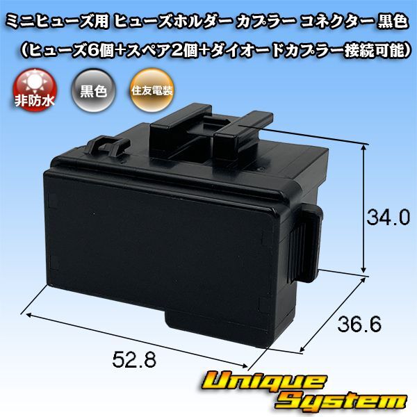 住友電装 ミニヒューズ用 非防水 ヒューズホルダー カプラー コネクター 黒色 (ヒューズ6個+スペア2個+ダイオードカプラー接続可能)